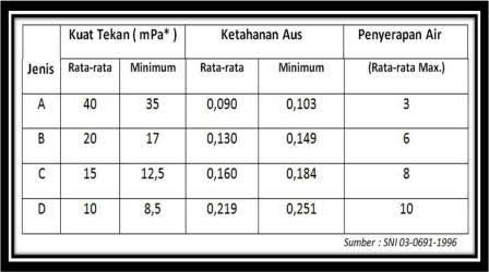 Persyaratan mutu paving block menurut SNI-03-0691-1996 sebagi berikut :